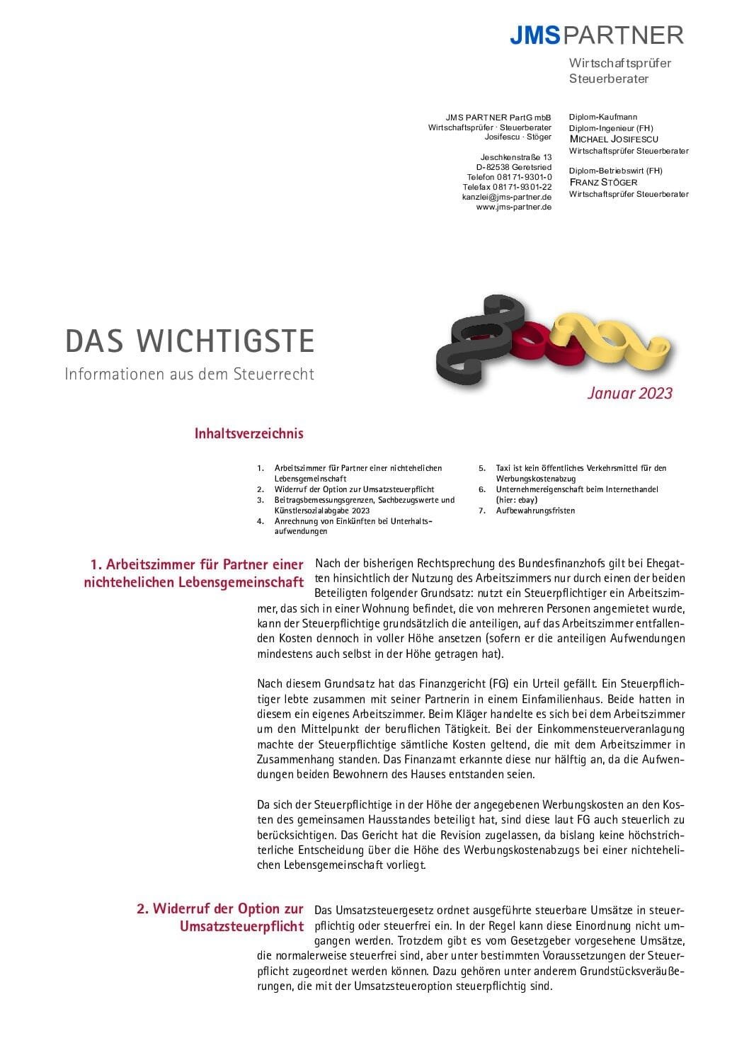 Bitte beachten Sie, dass dieses Informationsschreiben eine individuelle Beratung nicht ersetzen kann! Eventuelle Ände- rungen, die nach Ausarbeitung dieses Informationsschreibens erfolgen, werden erst in der nächsten Ausgabe berücksichtigt. Trotz sorgfältiger und gewissenhafter Bearbeitung aller Beiträge übernehmen wir keine Haftung für den Inhalt.