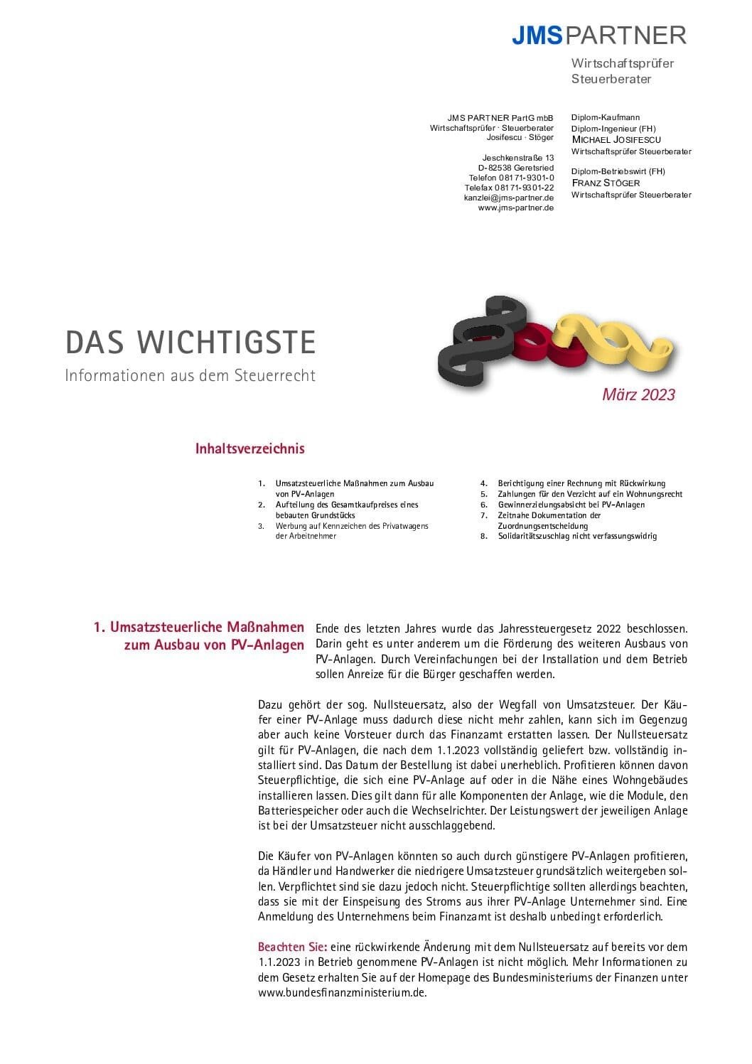 1. Umsatzsteuerliche Maßnahmen zum Ausbau von PV-Anlagen