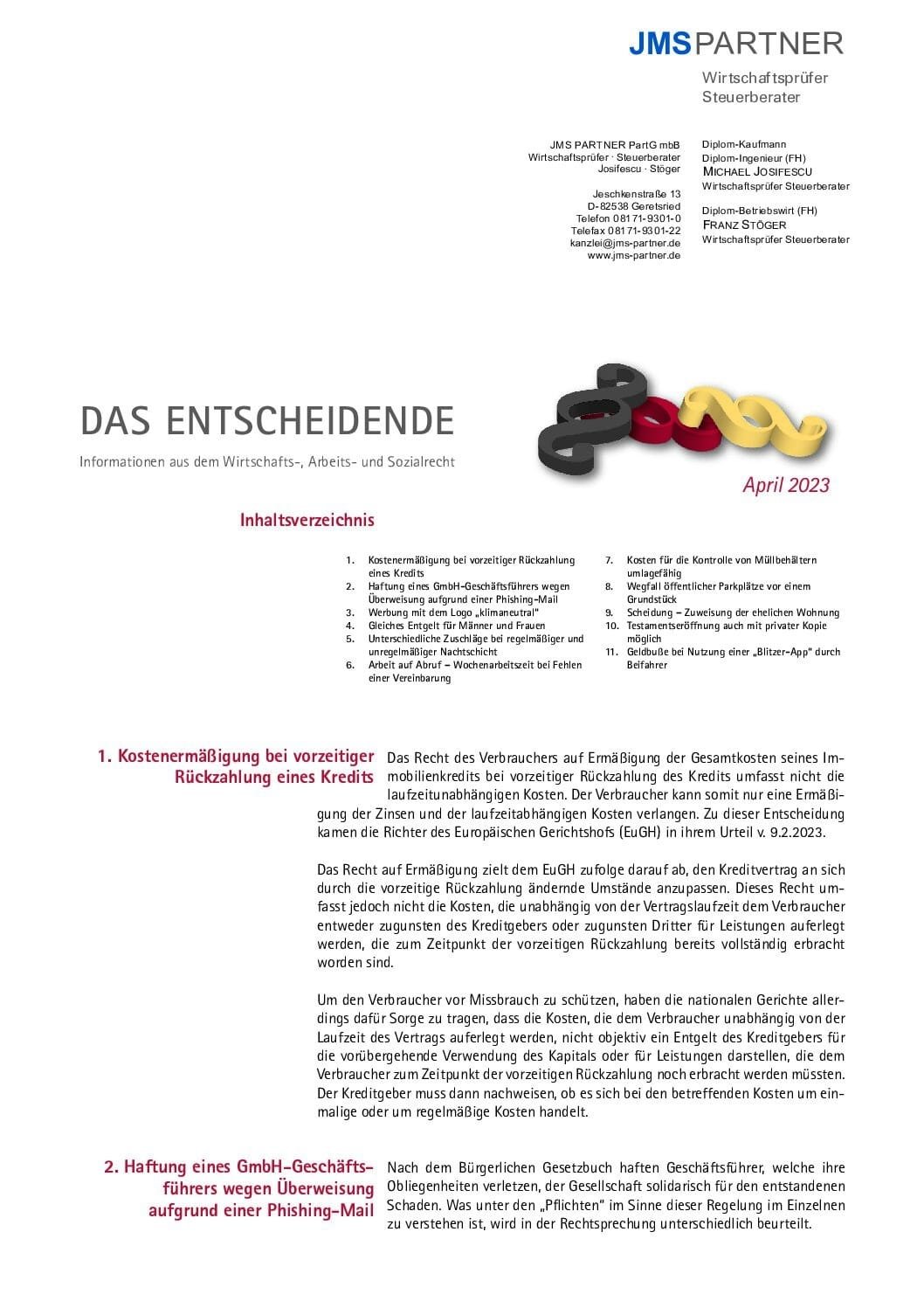 1. Kostenermäßigung bei vorzeitiger Rückzahlung eines Kredits