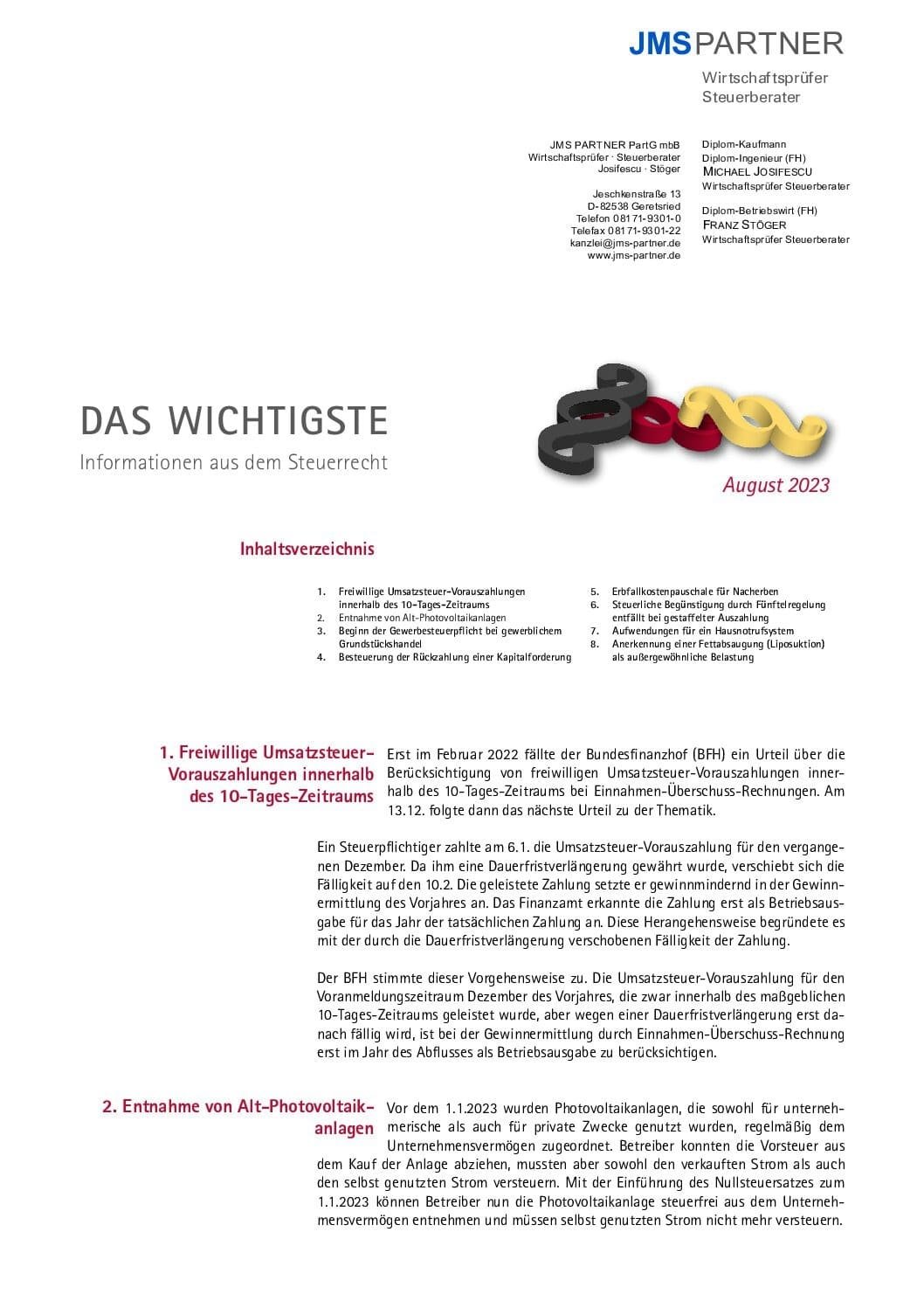 1. Freiwillige Umsatzsteuer-Vorauszahlungen innerhalb des 10-Tages-Zeitraum