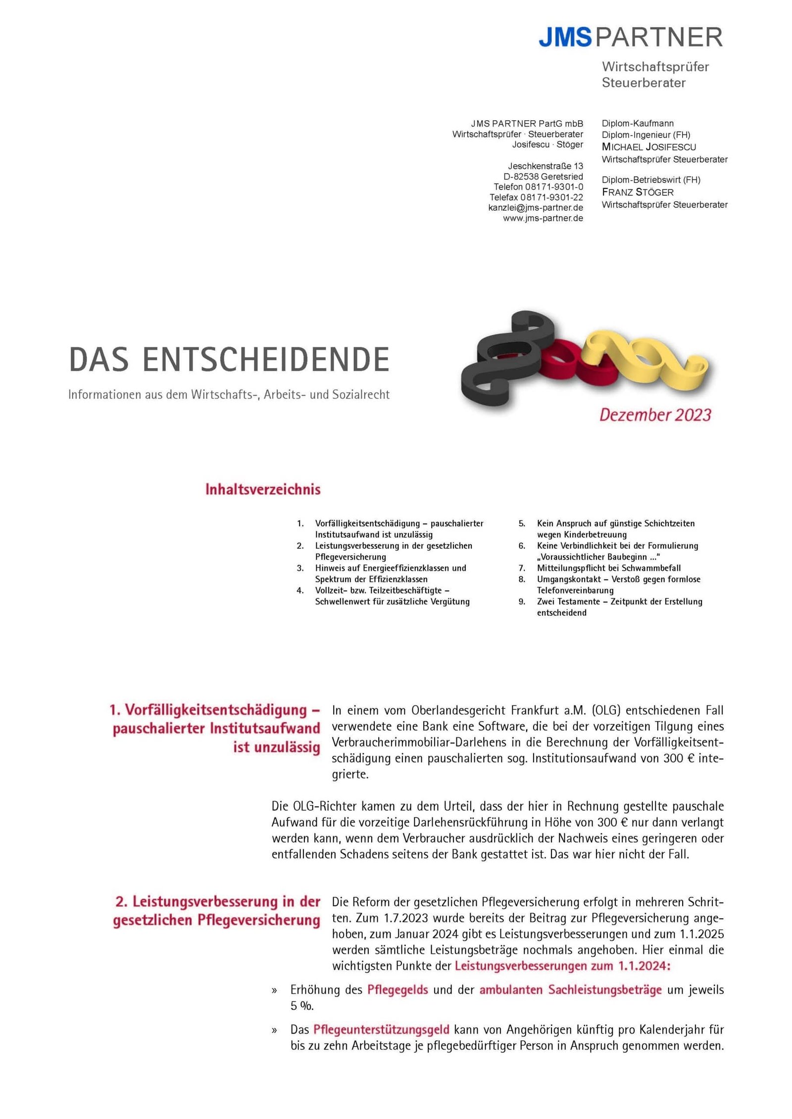Hier einmal die wichtigsten Punkte der Leistungsverbesserungen zum 1.1.2024: